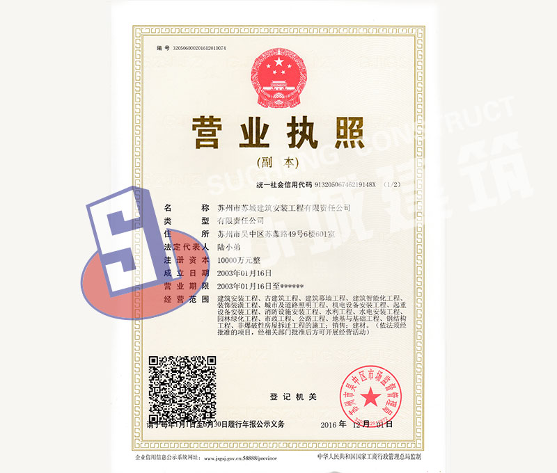 蘇州市蘇城建筑安裝工程有限責任公司是一家建筑業企業,擁有房屋建筑施工總承包一級資質,