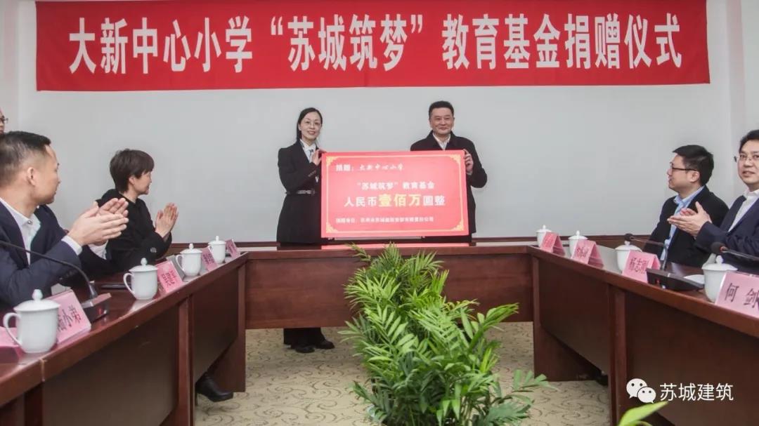 2月26日上午,蘇州市蘇城建筑安裝工程有限公司向大新中心小學(xué)捐贈(zèng)100萬元,設(shè)立“蘇城筑夢(mèng)”教育基金,捐贈(zèng)儀式于張家港大新中心小學(xué)杏樓二層接待室舉行。