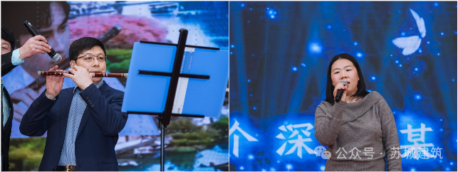 晚宴期間,精彩節(jié)目輪番上演。五分公司 7 位項目經理合唱的《真心英雄》唱出了建筑人拼搏奮斗的豪邁情懷;總公司江新功江總的笛子演奏、二胡演奏如天籟之音,為晚宴增添了濃厚的文化氛圍、小品節(jié)目《昨天今天明》、朗誦《我愛上班》也為整個晚宴添加了更多地快樂。